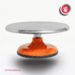 Suporte para bolo em alumínio de alta qualidade, resistente ao uso ao longo do tempo. Com grande superfície de apoio, girando nos dois sentidos (direita/esquerda), dotado de três ranhuras para garantir o correto posicionamento do bolo no suporte. A base antiderrapante garante maior estabilidade e evita que o elevador deslize na superfície durante as fases de decoração dos doces.