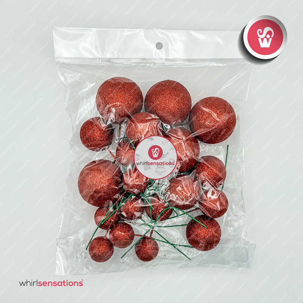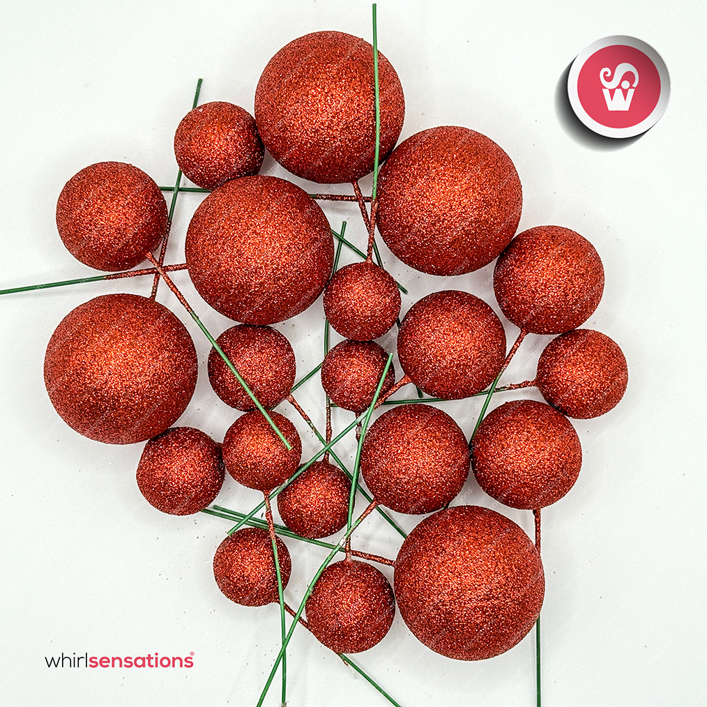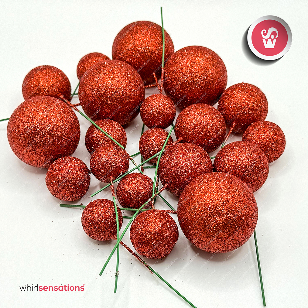 20 Bolinhas de esferovites pintadas em tamanhos variados , para decorar bolos , doces e sobremesas.
