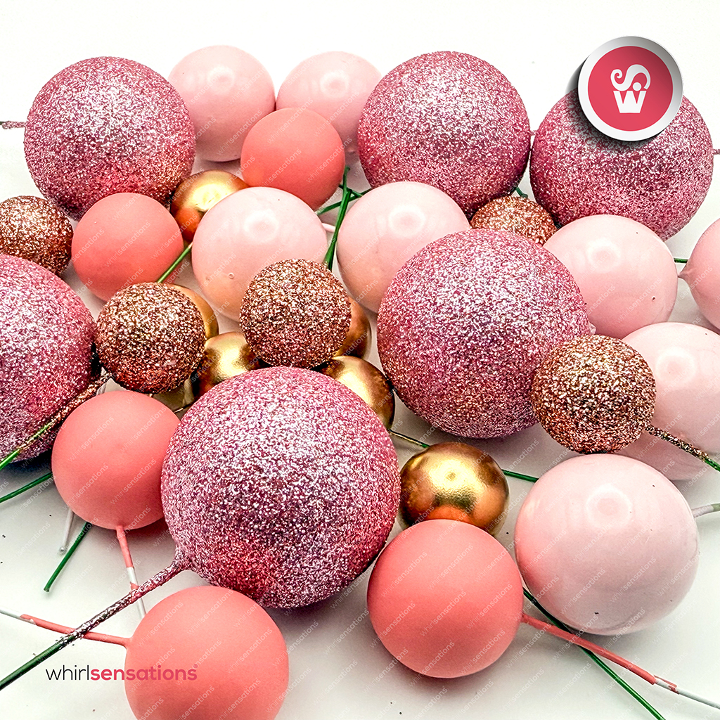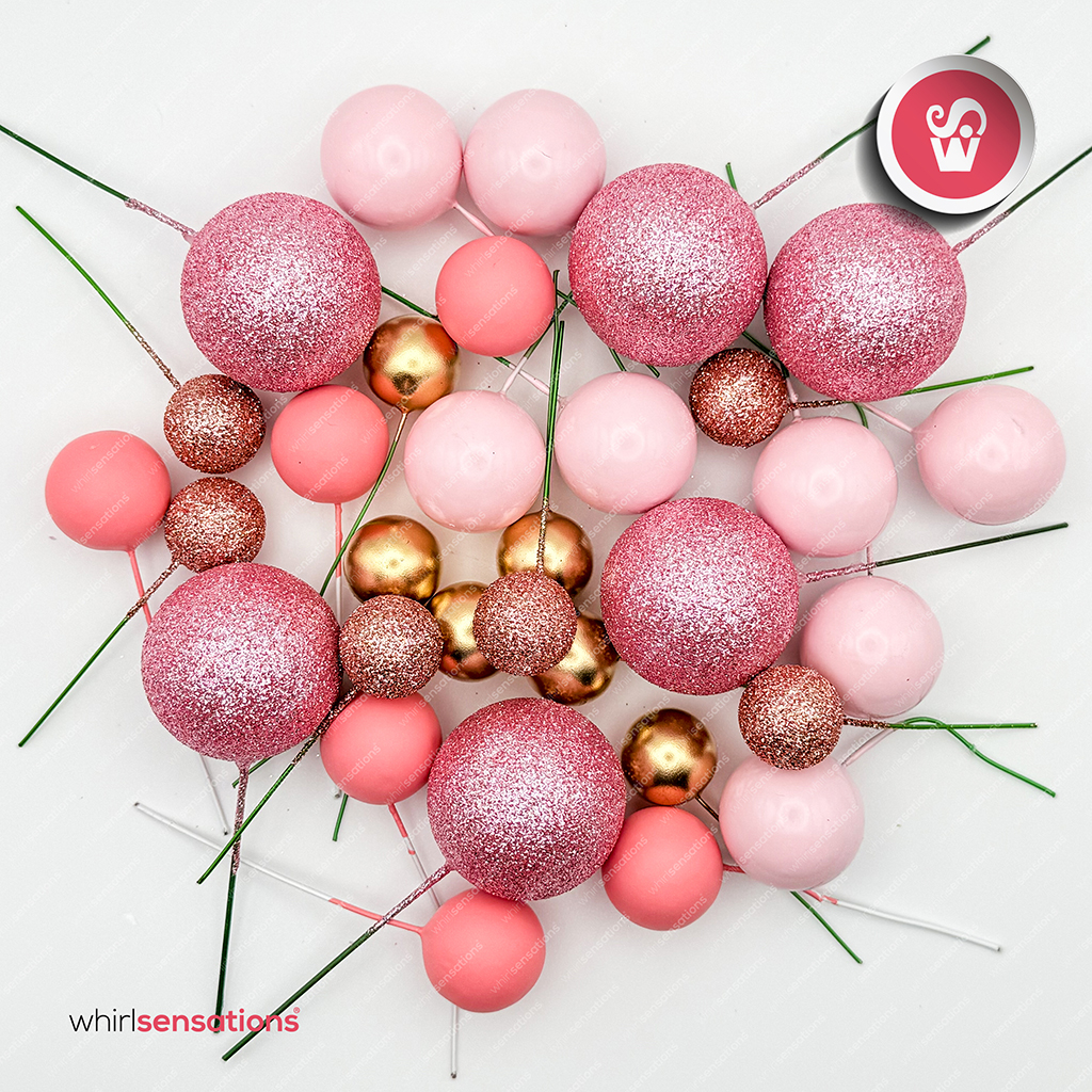 Bolinhas de esferovites pintadas em tamanhos variados , para decorar bolos , doces e sobremesas.