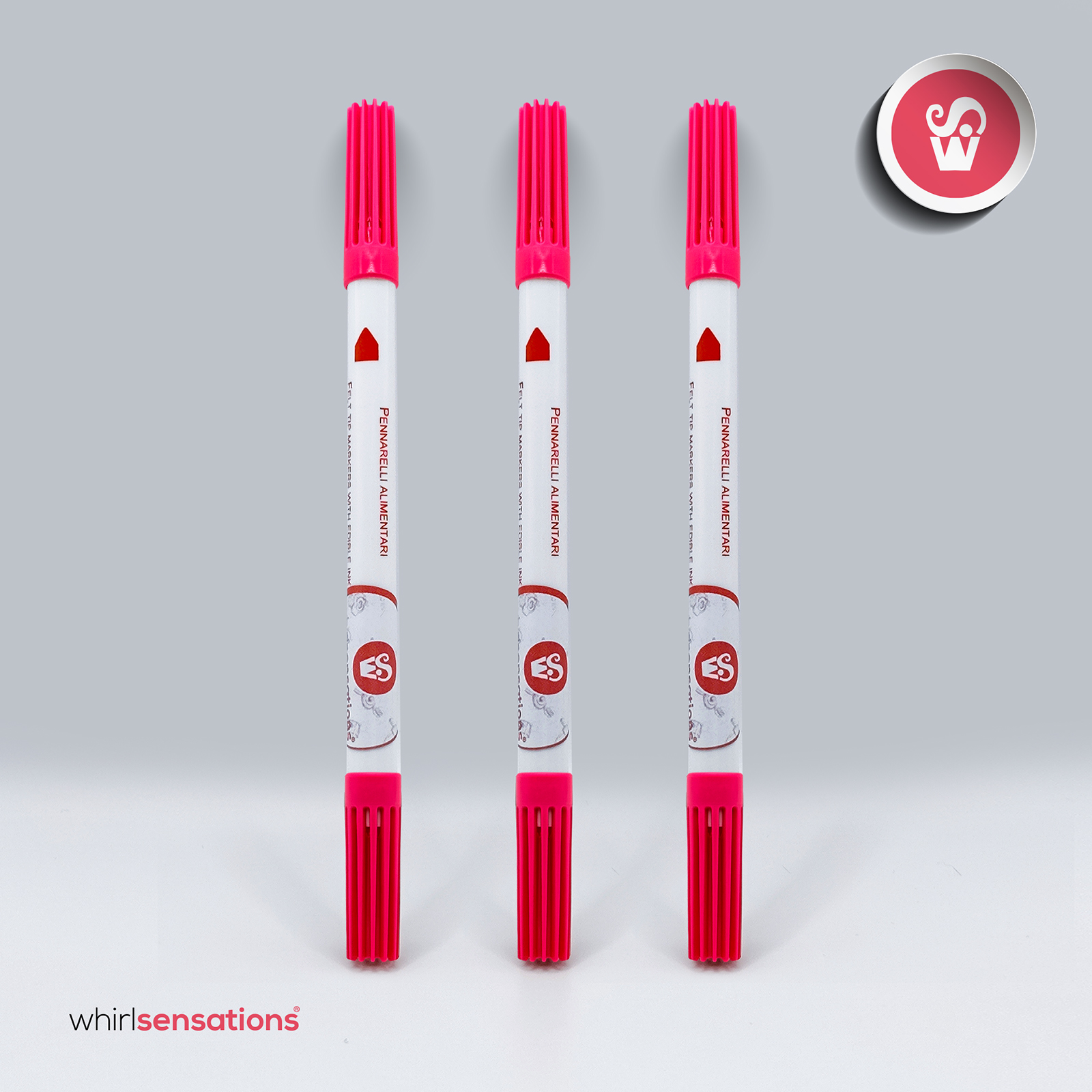 Caneta com tinta comestível de 2 pontas para fazer linhas grossas e finas. A tinta sai facilmente da caneta e tem um tempo de secagem curto, o que permite que desenhe diretamente em superfícies lisas secas, duras ou semi-duras, como pasta de açúcar.