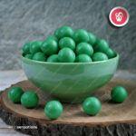 Mini bolinhas de arroz e trigo cobertas com chocolate branco e caramelo, AZUL e PÉROLA, de cor brilhante com aproximadamente 12mm de diâmetro.