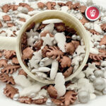 Mistura de flocos de neve em açúcar para decorar bolos, bolachas, cupcakes, cake pops, donuts, sobremesas e outras receitas.