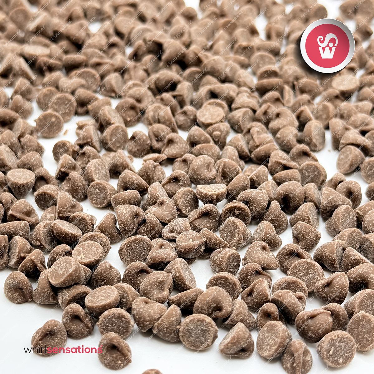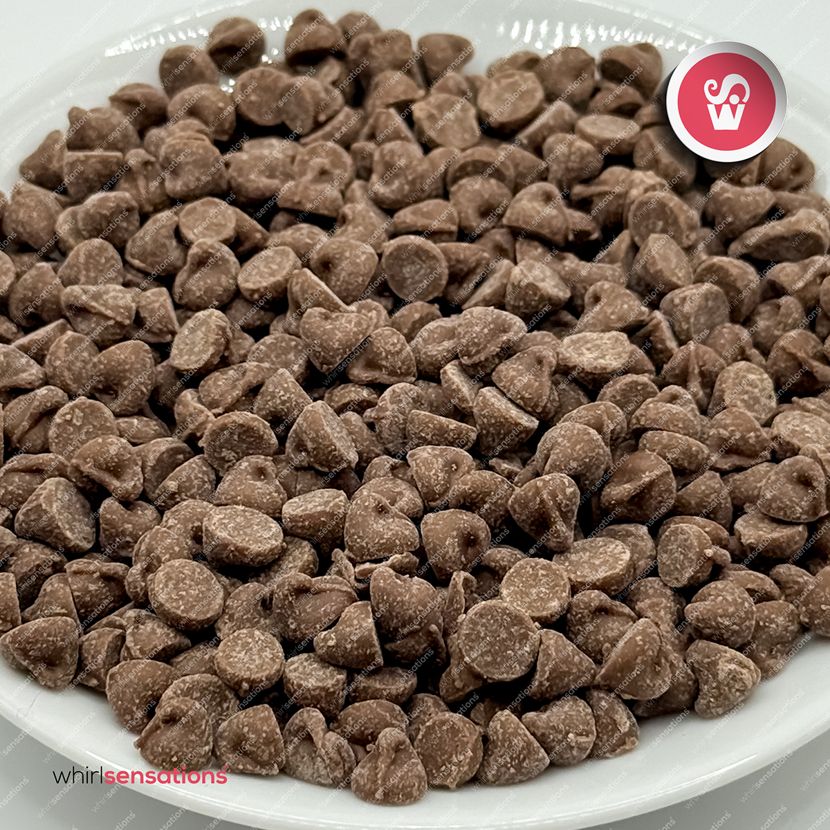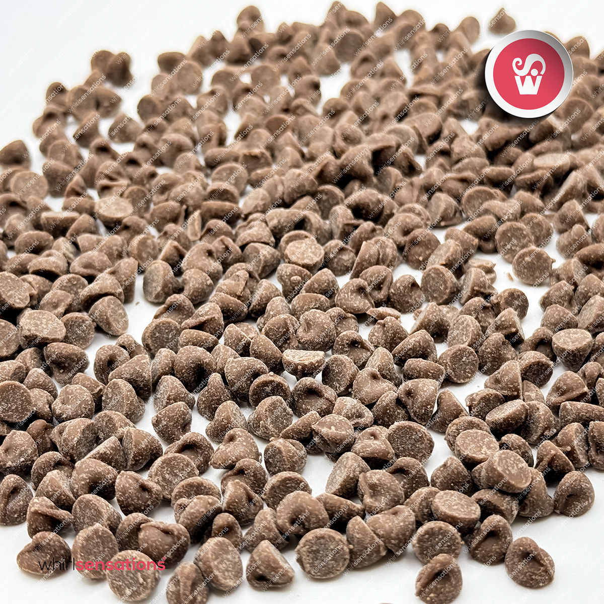 Pequenas gotas de chocolate de leite para elaboração de bolos, cupcakes, bolachas e outras preparações.