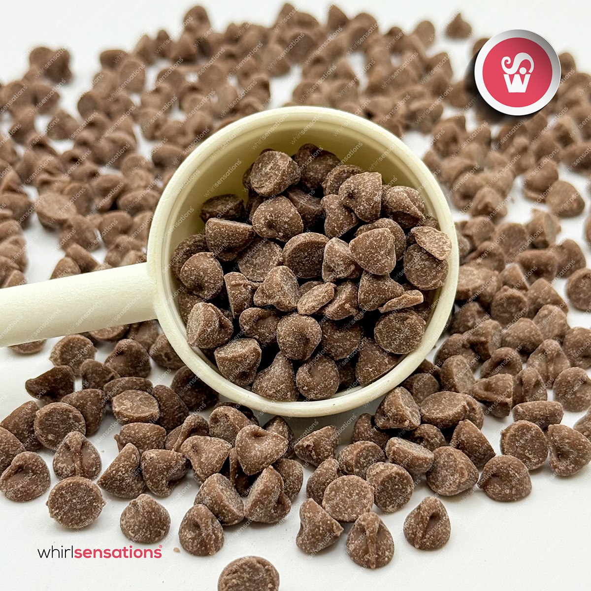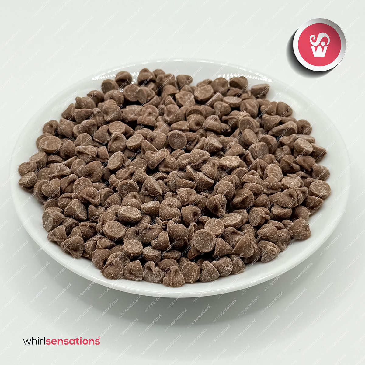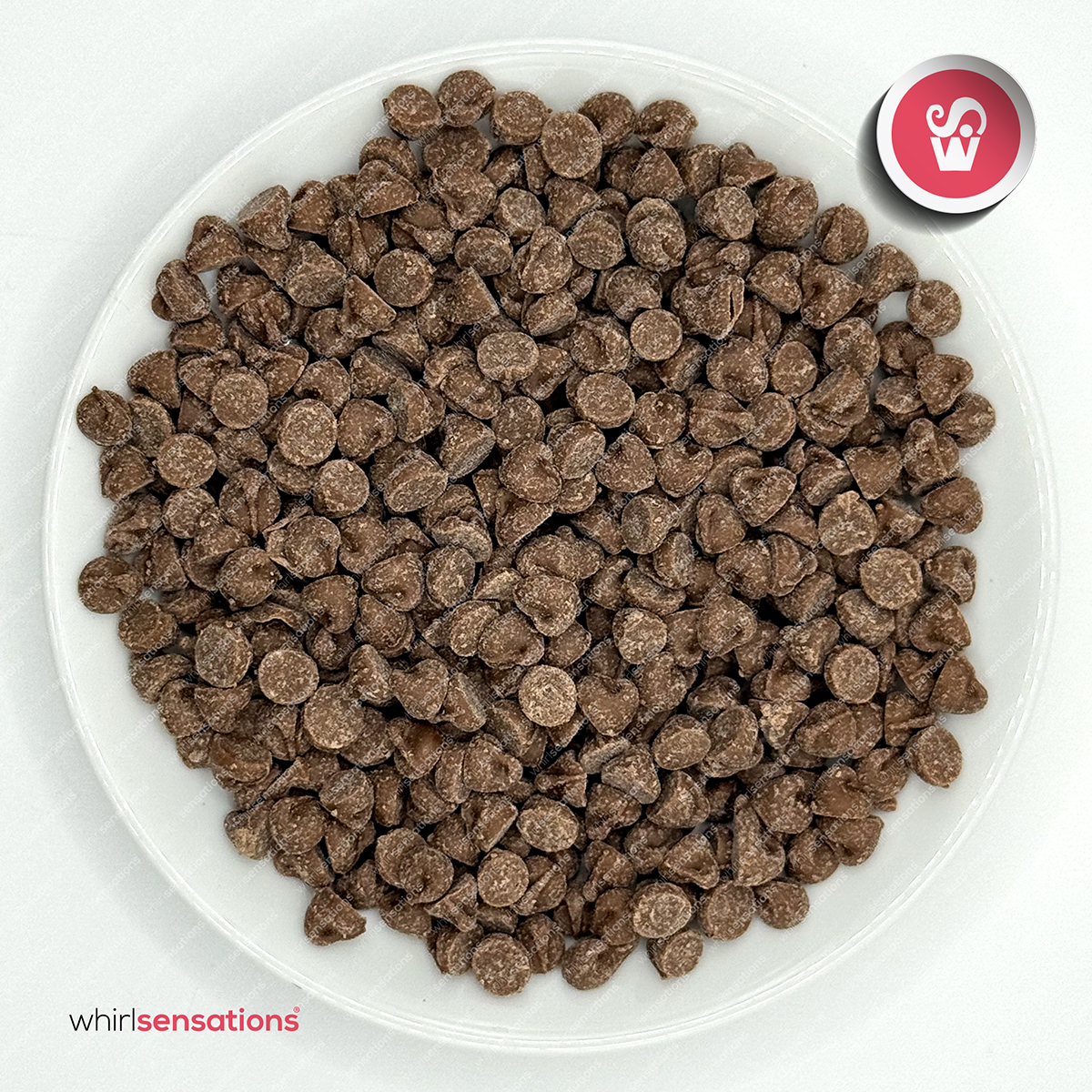 Pequenas gotas de chocolate de leite para elaboração de bolos, cupcakes, bolachas e outras preparações.