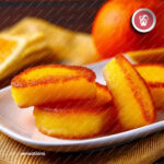 Massa húmida e esponjosa, com suave sabor a laranja.